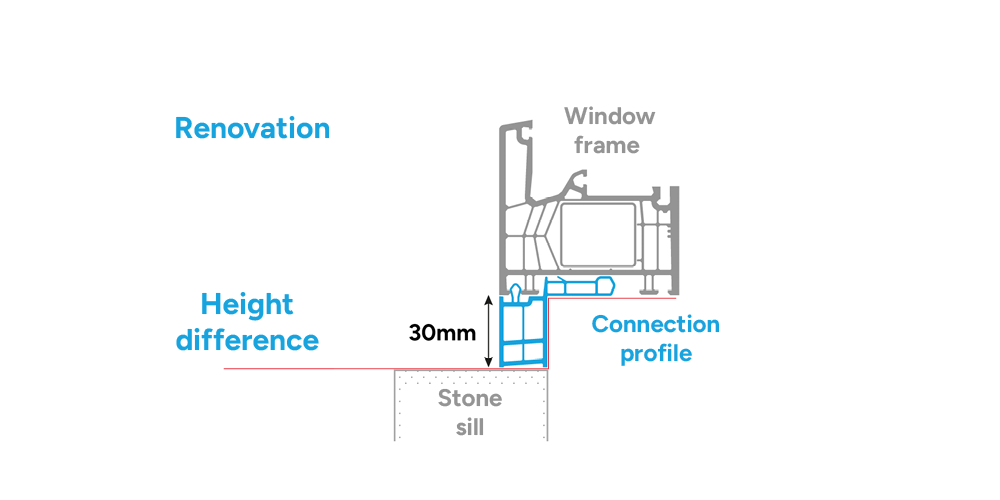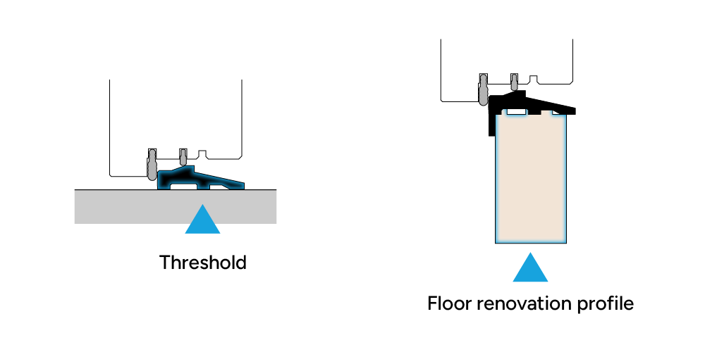 The base installation profile enables optimal, simple and stable front door installation on the unfinished floor and provides a thermal break between the interior and exterior areas of the floor structure, preventing what is known as a thermal bridge.