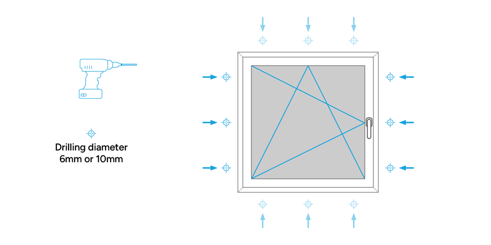 Use pre-fabricated installation holes to fit your windows simply and quickly.
