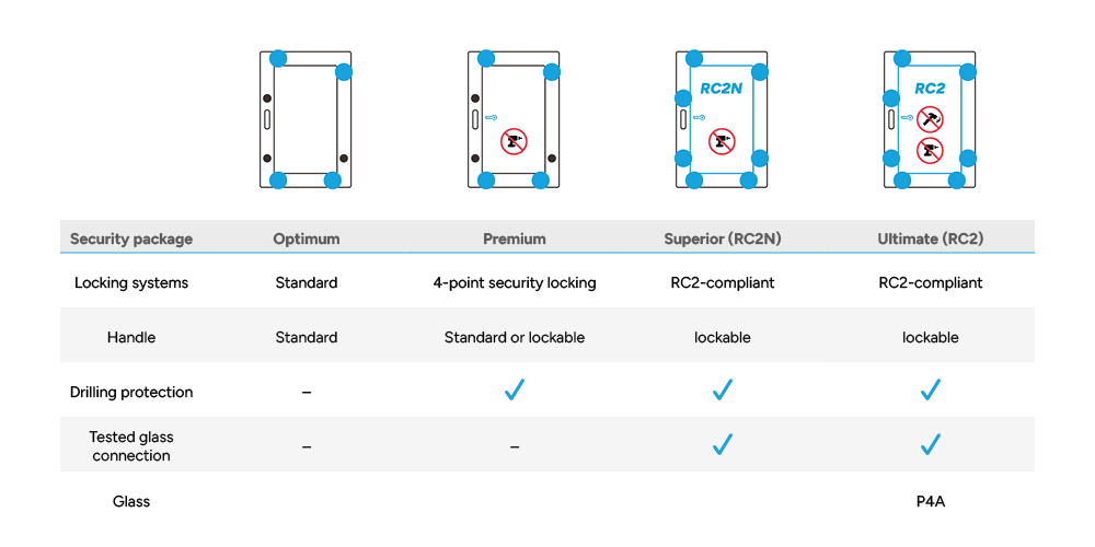 If you choose the security package RC2(N), you will also receive a lockable window handle.