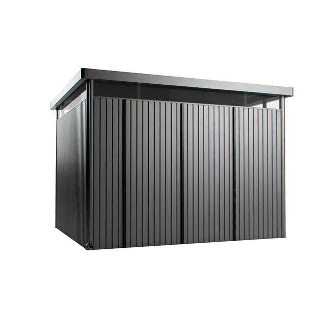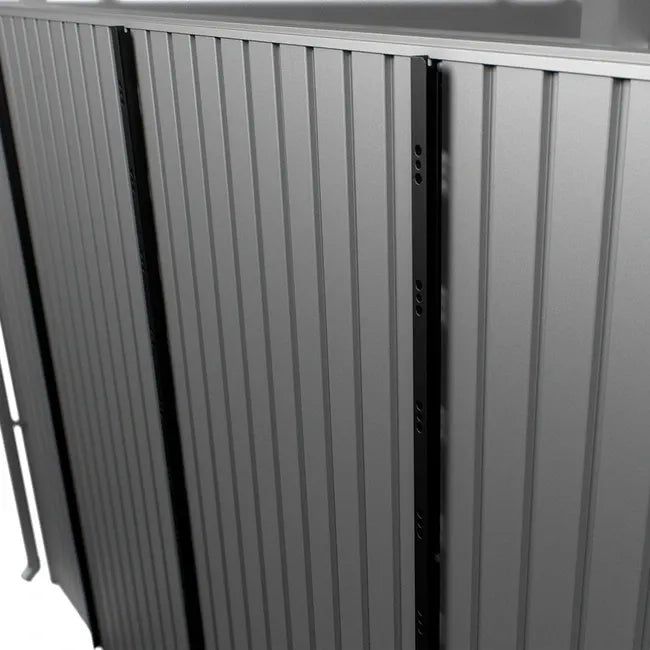 Mounting option for PV modules – without drilling and therefore without loss of warranty. The delivery includes vertical rails to which PV modules and balcony power plants can be easily and securely attached using standard mounting materials. This turns the garden shed into a green energy source.