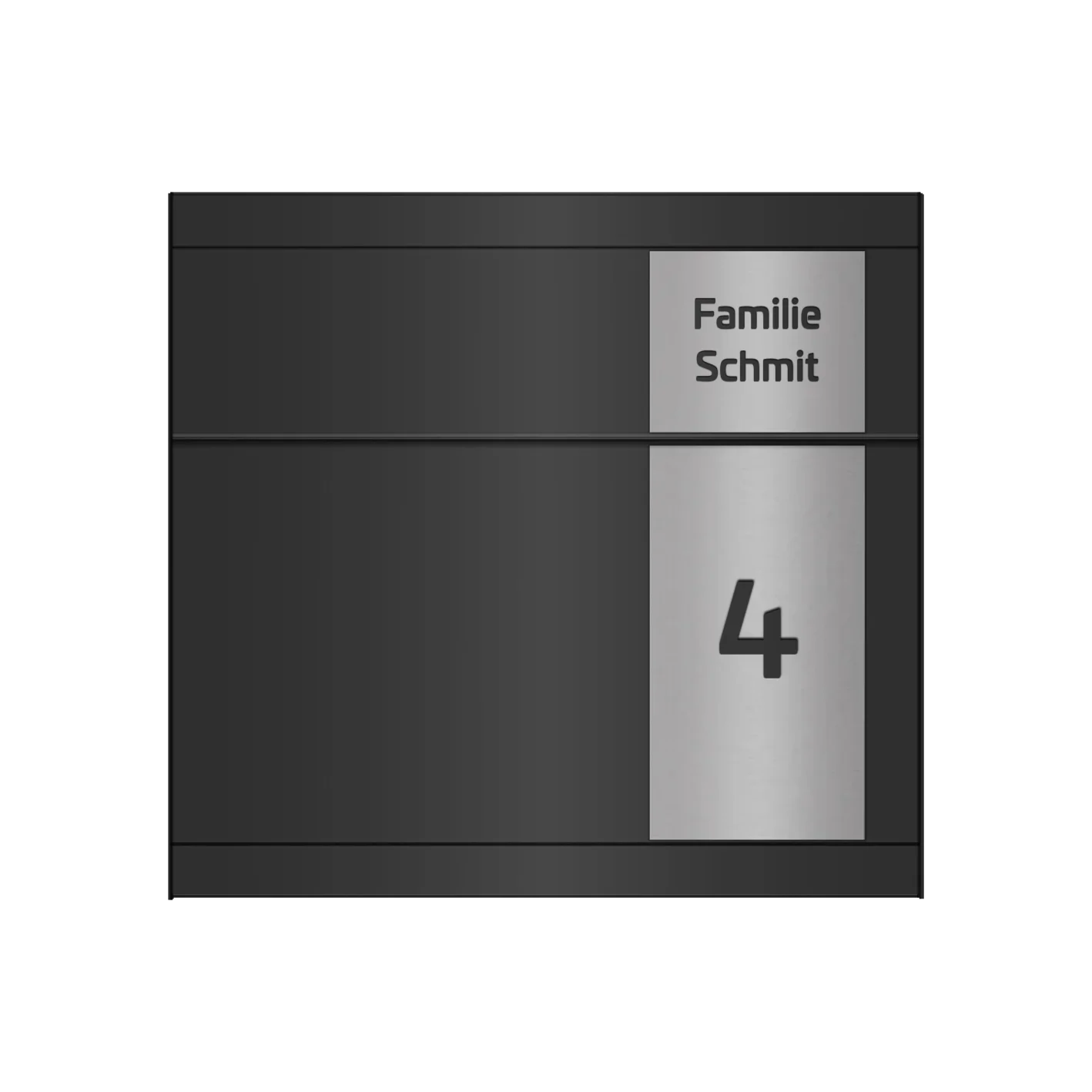 Donnez à votre boîte aux lettres une touche personnelle et élégante grâce à des inscriptions gravées au laser dans de l’acier inoxydable brossé de 0,8 mm. L’inscription est parfaitement adaptée à la boîte aux lettres, crée un contraste attrayant et met en valeur votre nom ainsi que le numéro de la maison avec élégance. Personnalisez jusqu’à deux lignes de 15 caractères chacune et un numéro de maison à deux chiffres selon vos envies.