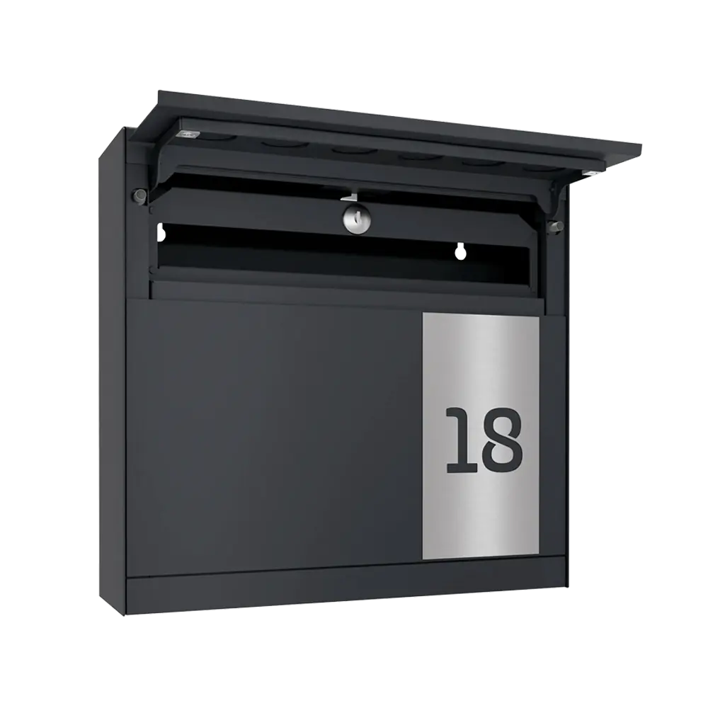 Misez sur une technologie intelligente et un design moderne qui facilitent votre quotidien. Grâce au mécanisme magnétique, la trappe de dépôt reste ouverte pendant que vous insérez tranquillement votre clé dans la serrure protégée et récupérez votre courrier. Le système d’amortisseur permet à la porte de se fermer en douceur, la butée solide la maintient en position – ainsi, votre courrier reste toujours à portée de main et parfaitement en sécurité.