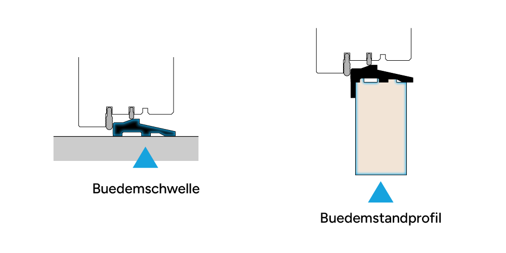 Déi thermesch getrennte Buedemschwelle aus Aluminium am Faarwton Sëlwer ass serieméisseg. Ausféierung mat onsichtbarer Verschraubung.