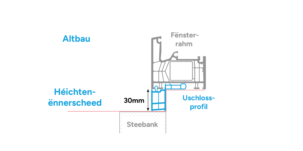 D'Buedemstandprofil erméiglecht en optimalen, einfachen an stabilen Hausdierabau op de Rohbuedem a suergt fir eng thermesch Trennung tëscht dem Bannenzeg -an dem Baussenberäich vum Buedemopbau a verhënnert eng sougenannt Kältebréck.