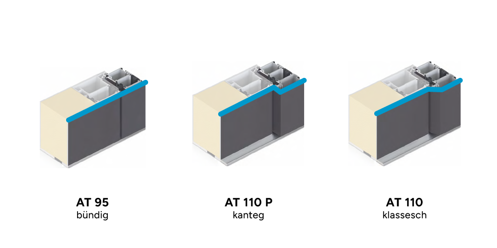 All Systemer si am Flächeversetzten Design gestalt, mat 3 Dichtungsniveau an enger no vir geriichtener Entwässerung, déi duerch Ofdeckkappen geschützt ass.