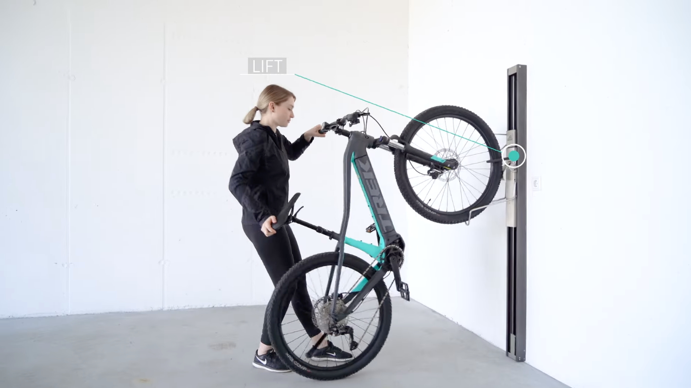 Vum E-Mountainbike bis zum Rennrad – de Biohort BikeLift zitt all Vëlo wéi vun eleng vertikal d'Mauer erop. Dat spuert Plaz a geet ustrengungslos. Vëlo anhaken, drécken an schonn zitt de BikeLift all Vëlo bis zu engem Gewiicht vun 30 kg no uewen.