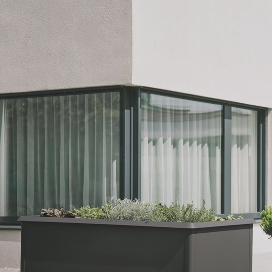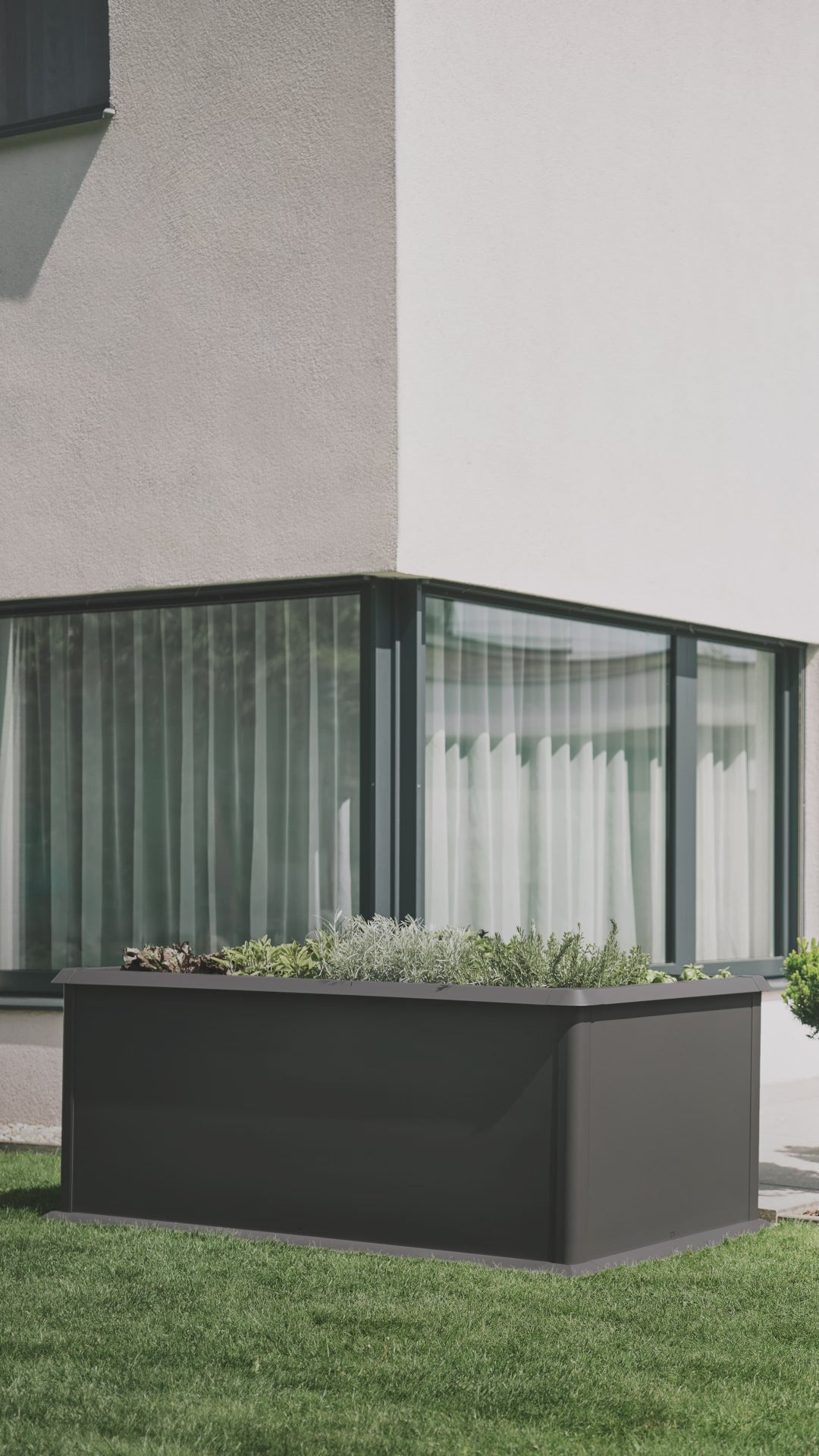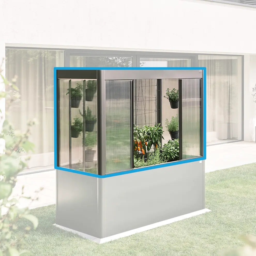 Déi duerchduecht Kombinatioun aus Héichbeet an engem passgenaue Gewächshausopbau schaaft e geschützt Mikroklima a bitt optimal Konditiounen fir gesond Wuesstem an eng verlängert Gaardensaison.