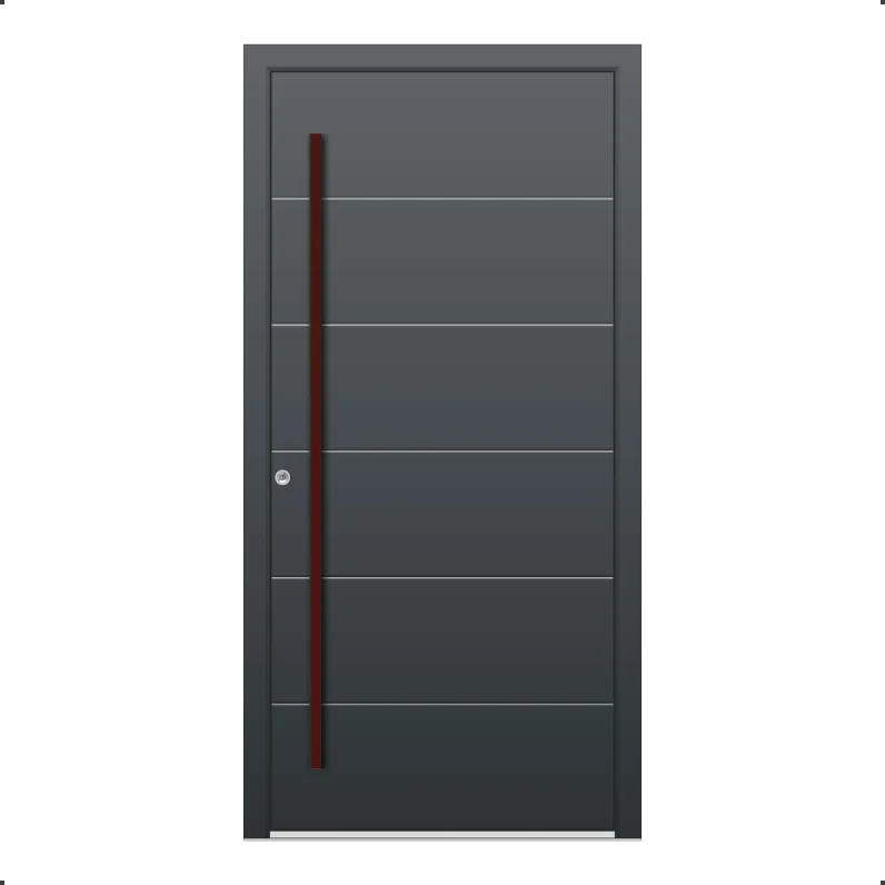 Die Türflügel dieser Modell-Reihe zeichnen sich durch ihre Stärke von stolzen 94 mm aus, die beidseitig mit einer starken Aluminiumplatte - einer 3 mm Dicke außen und 2 mm Dicke innen - verkleidet ist.